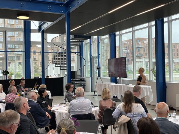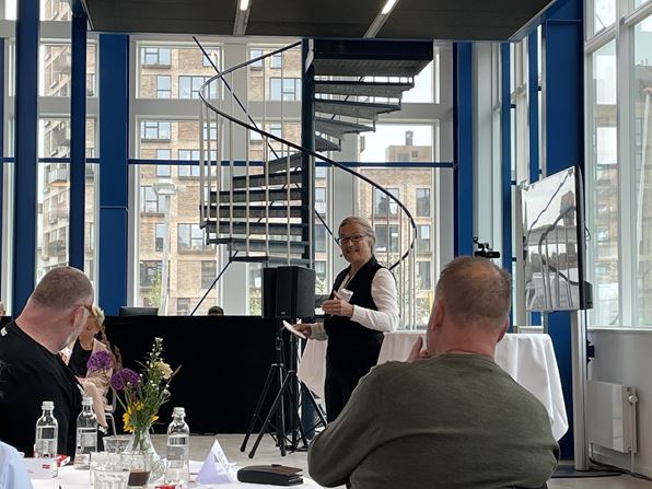 Karen Lumholt fortalte om, hvorfor det er så vigtigt, at vi skal skabe rum for fællesskaber omkring vores bolig.