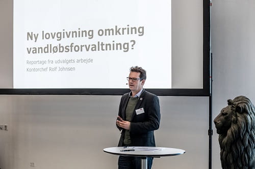 Kontorchef for Miljø i Region Midtjylland Rolf Johnsen fortalte om, hvor langt man på nuværende tidspunkt er med udformningen af en ny lovgivning på vandløbsområdet. Han fremhævede blandt andet forslaget om at tænke i helhedsplaner frem for strækningsbaserede planer for vandløbsforvaltningen. Sidstnævnte kan føre til, at et tiltag et sted i et vandløbssystem kan få negative konsekvenser andre steder. Dette mente Rolf Johnsen ikke er en optimal løsning, og han slog fast, at vi må arbejde sammen om vandløbstiltagene. Han fremhævede ligeledes anbefalingen om at inddrage vandselskaberne i vandløbstiltagene, da de kan være med til at finansiere løsningerne.
